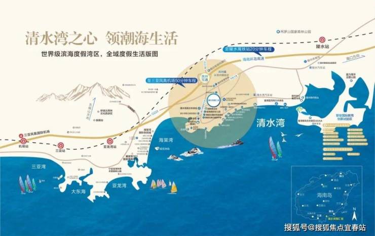 项目地处北纬18°以南,距三亚市区直线距离约45公里,尊踞大三亚醇熟生活圈;位于清水湾度假区中央核心,坐拥清水湾万亩文旅醇熟配套,紧邻陵水黎安国际教育创新试验区,致力于打造清水湾片区产品标杆。