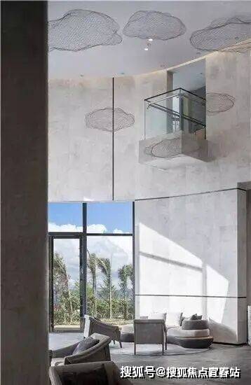 素灰的墙面简洁大方又不加修饰,反而很真实的将最原始的状态展现出来,地面与空间的完美呼应,让人感觉轻松舒适,从某种角度来看又更像是一种媒介,引导我们去感受大自然的变化。