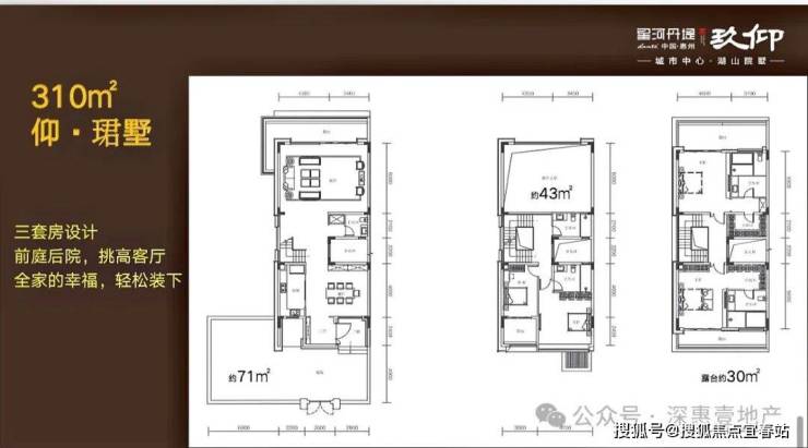 310平临湖一排别墅,使用面积约840-900平,买三层享五层,地下室全采光设计