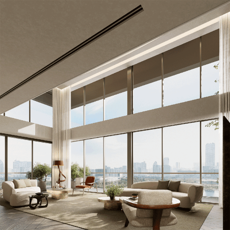 项目单层约3.5米层高,远超普通高端住宅的3.1-3.3米标准;约200㎡通过创新性的垂直空间设计,实现约600㎡的实际使用空间,达成居住体验的几何级增长。