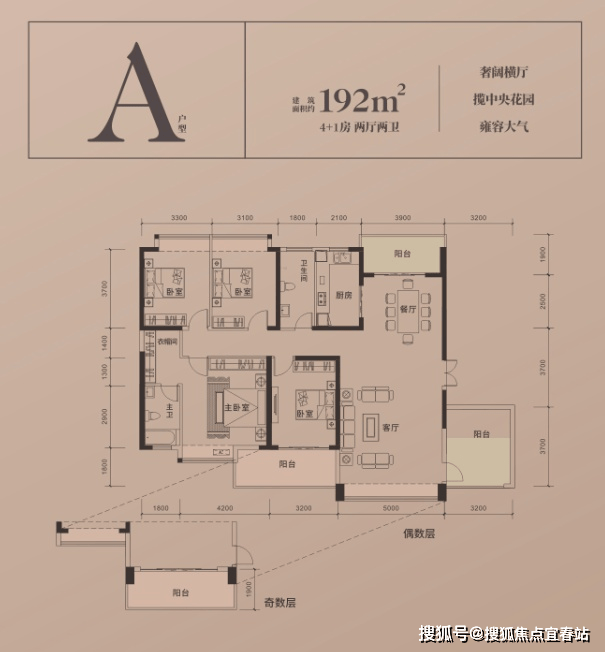 3-5层上叠户型,赠送天台花园,拥有广阔的视野景观。