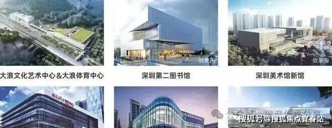 "五馆一体,双子星文体中心建设中,约1公里范围享受大浪文化艺术中心和体育中心;约10公里范围连接深圳第二图书馆、美术馆新馆、演艺馆、展览馆和龙华市政四馆,简上体育综合体、深圳书城和龙华文体中心。"