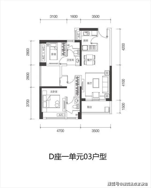 【梯户比】D座2梯4户,C座3梯6户