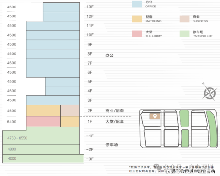 【尺度】层高4.5m 标准层约2500-2700㎡