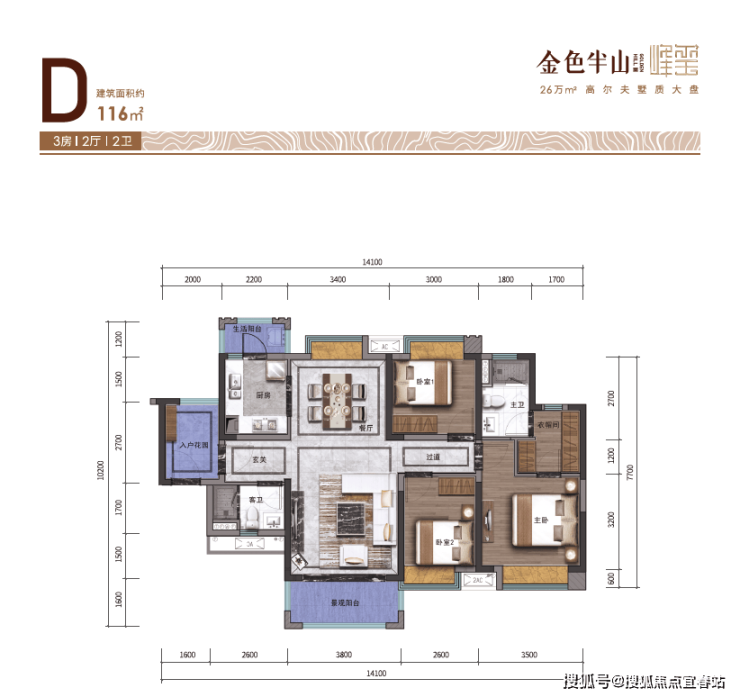 【稀缺台地大洋房】项目依山而建,打造2梯4户,96-141平3房至4房。