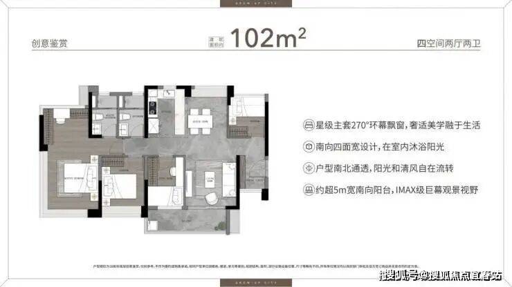 户型亮点?南北对流、宽阔阳台、超高使用率布局,舒适度与实用性兼顾。