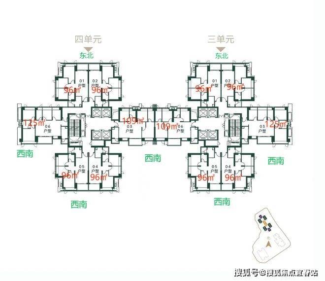 推出约560套,面积96-109-125㎡,整体户型西南向(03/04/05/06),部分东北(01、02户型)