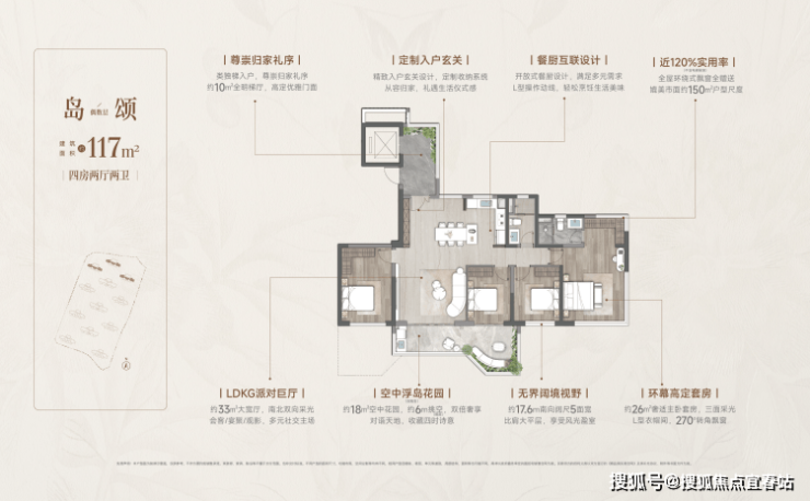 全明方厅布局:首创LDKGX一体化设计,全南向开间布局,搭配270°环幕全景视窗,将天际与园景尽收眼底,让阳光在室内肆意流淌。超大社交场域,会客、家宴、派对等功能均可随心切换。