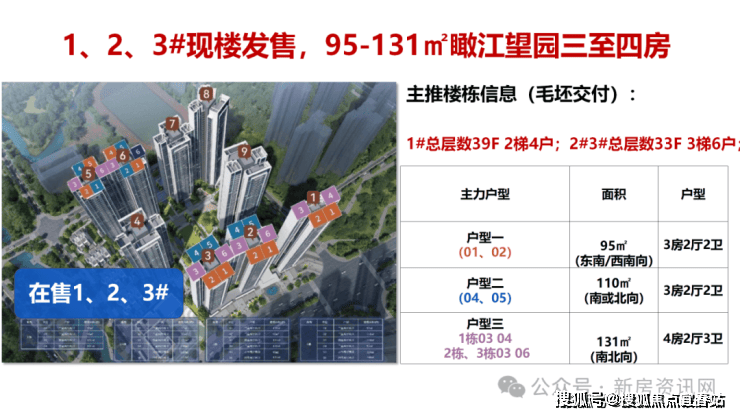 主力在售楼栋:1栋总层数 39F ;2-3栋 总层数 32F ;5-6-7栋总层数 33F ; 8栋总层数39F
