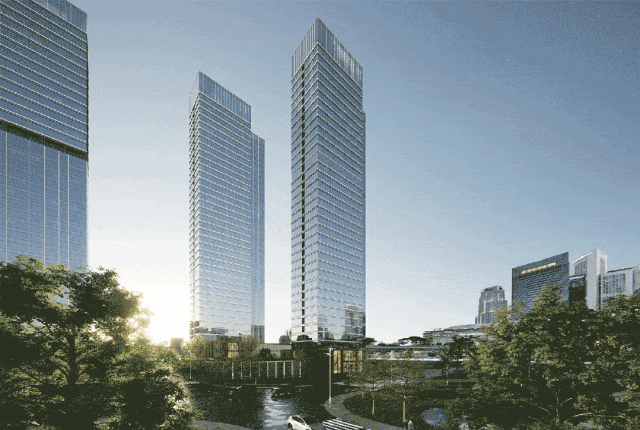 项目占地超过7万㎡,共有6宗地块,分别为A、B、C、D、E、F地块,定位“琶洲中二区核心区水滨地标”,业态以办公和商业为主,也有少量公建配套。
