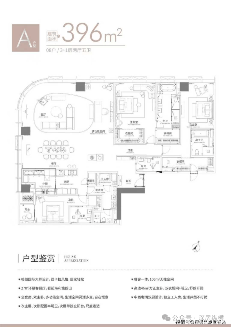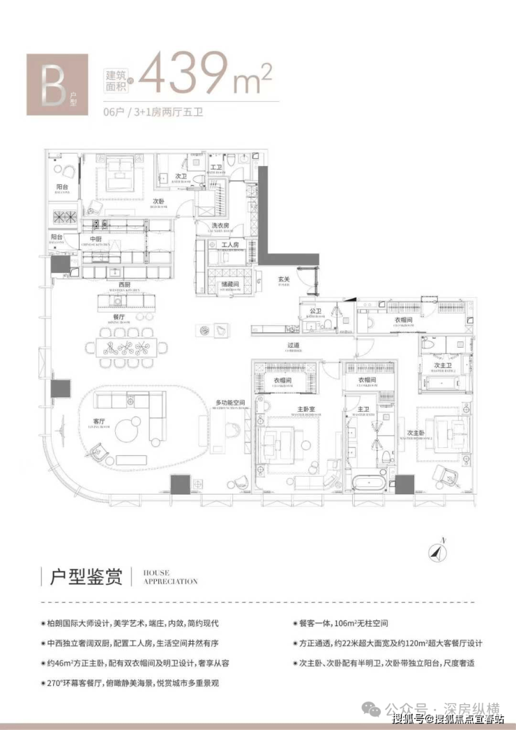 荟萃CCD、柏朗国际两大设计团队联袂匠造,以国际化视野,精研侨城湾芯云端新作,仅28席,位于建筑23-29层,全高区景观视野,建面约323-446㎡,纯粹大户云端居所。4款室内设计风格独特,尺度阔绰,兼顾细致实用,畅享舒适空间。
