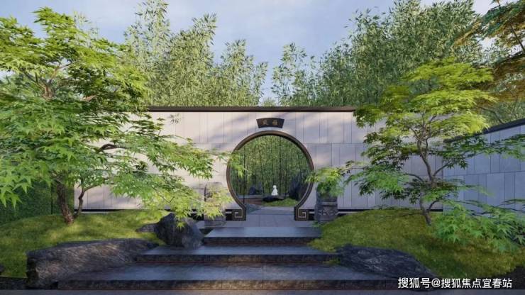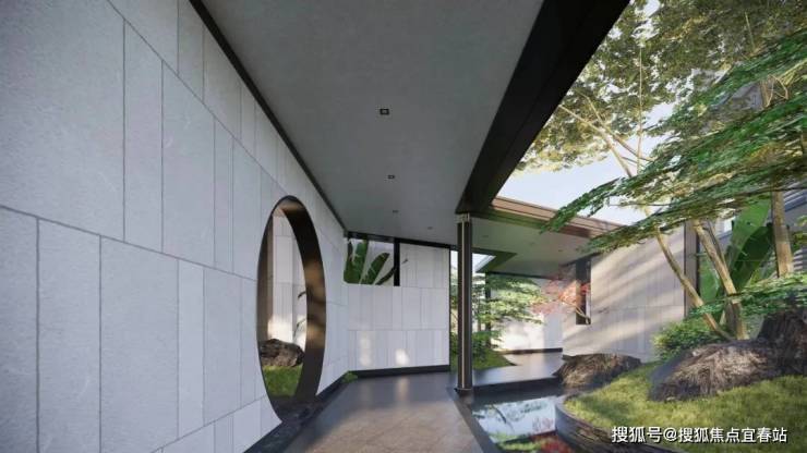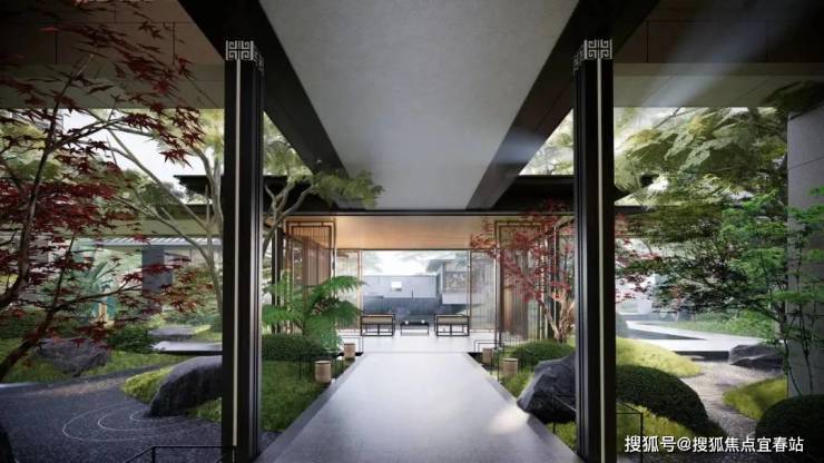 山中有山,水中有水。一进山水院,以叠石奇景,精巧花木为主,赋山形,观山语,呈现了一种如居山中的归家体验。二进镜水院,以水景、曲桥、角亭为主,呈现了符合中式生活特色的园林空间。