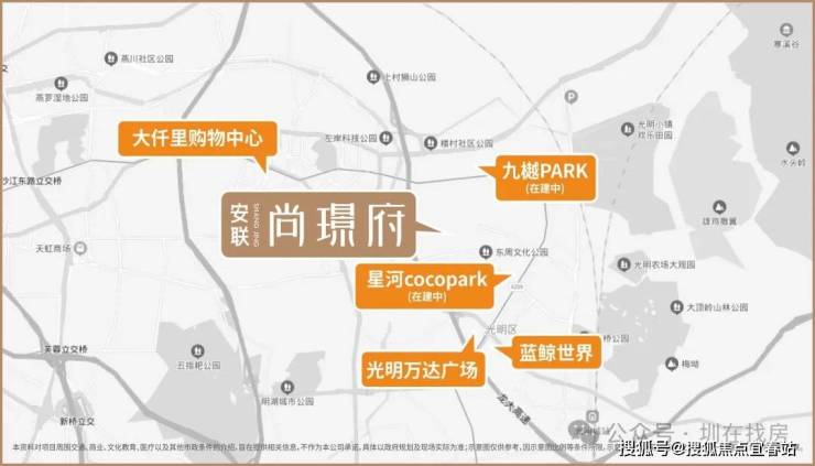 🛍 🛍 项目周边商业配套面积超过15万㎡,如光明广场、大仟里购物中心、万达广场、天虹商场等多所商场环绕,竭力满足生活所需