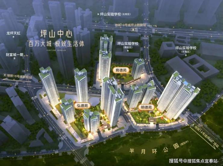 财富城2期所在的区位是整个坪山最核心的地段,汇聚了高铁+14/16号线双地铁+坪山实验学校+坪山中心公园+坪山天虹商场+坪山区政府+坪山体育中心+坪山图书馆,文艺馆等等,所有的市政配套基本都集中在这里,并且财富城2期也是该核心区域内唯一在售的新盘。