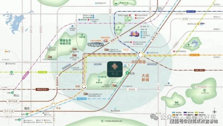 地铁方面,项目距离地铁3号线荷坳站约300米,步行5分钟即可抵达。乘坐地铁1站可达大运站,该站是深圳东部最大的综合交通枢纽,可换乘3号线、14号线、16号线等多条地铁线路。