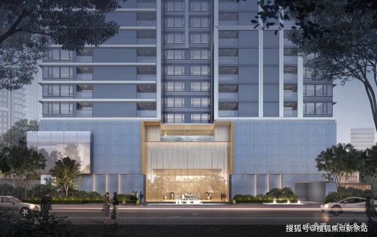 悦府二期的奢华质感,贯穿了项目每一处细节。在小区入口,项目采用围合酒店式落客庭院,约12米高和约20米宽社区入口采用奢侈品店立面打造手法,以及高约5.5米奢石景墙,造价高昂,凸显出项目高贵的质感。