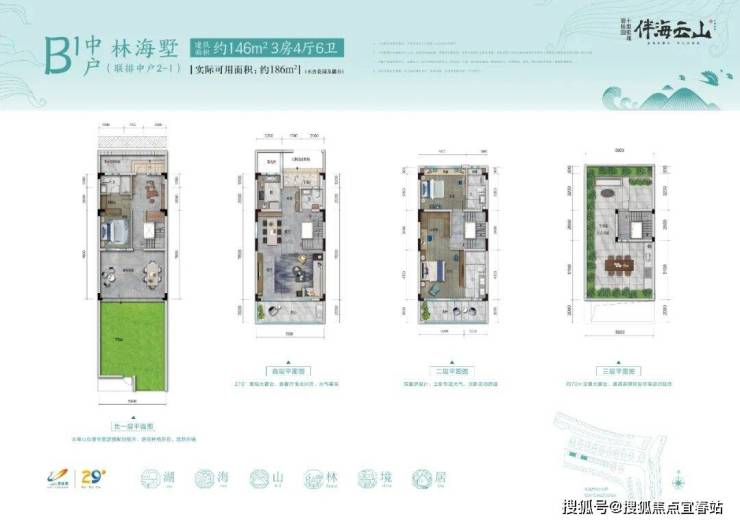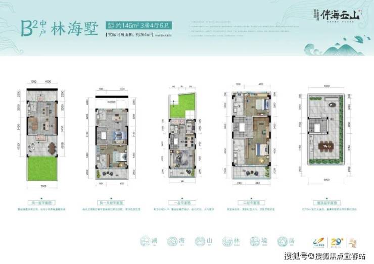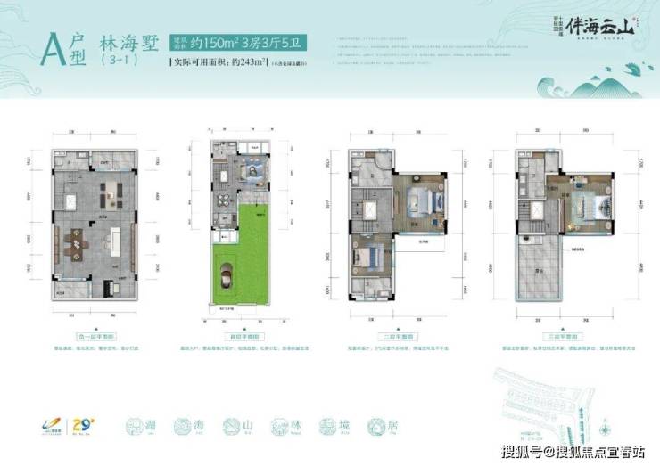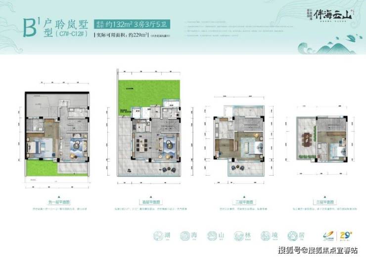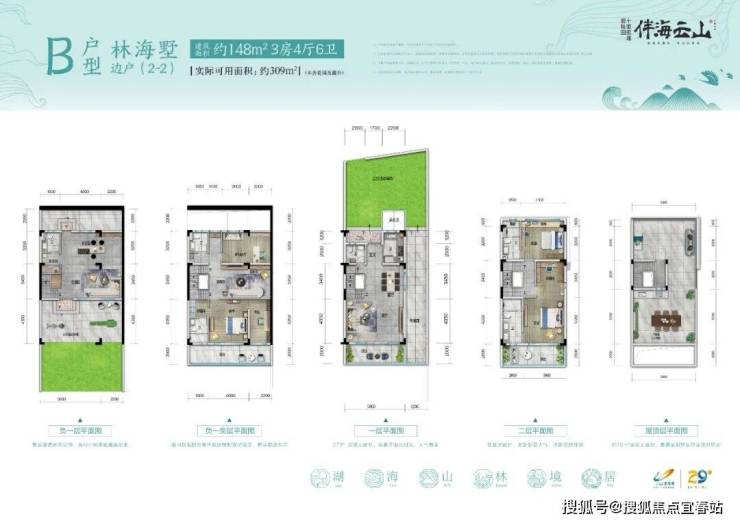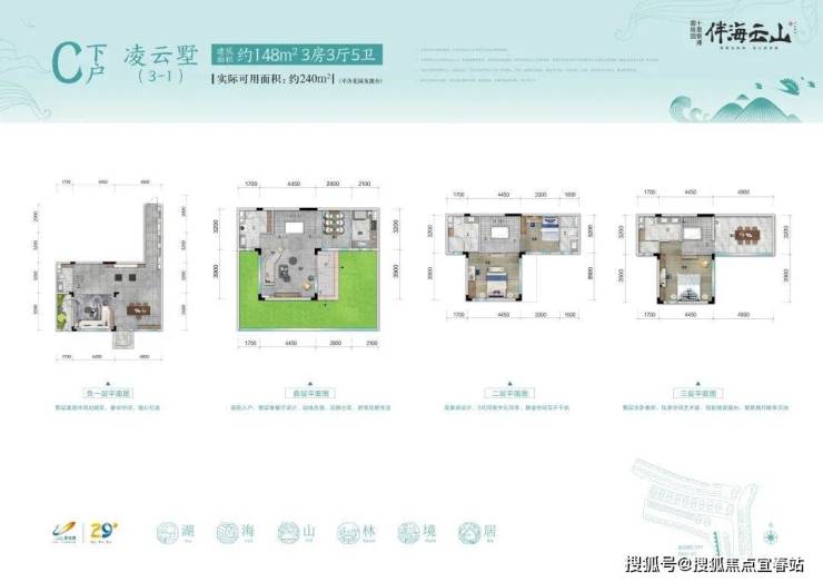 凌云墅C下户207样板房:建筑面积约148㎡,实际可用面积约240㎡(不计花园及露台)