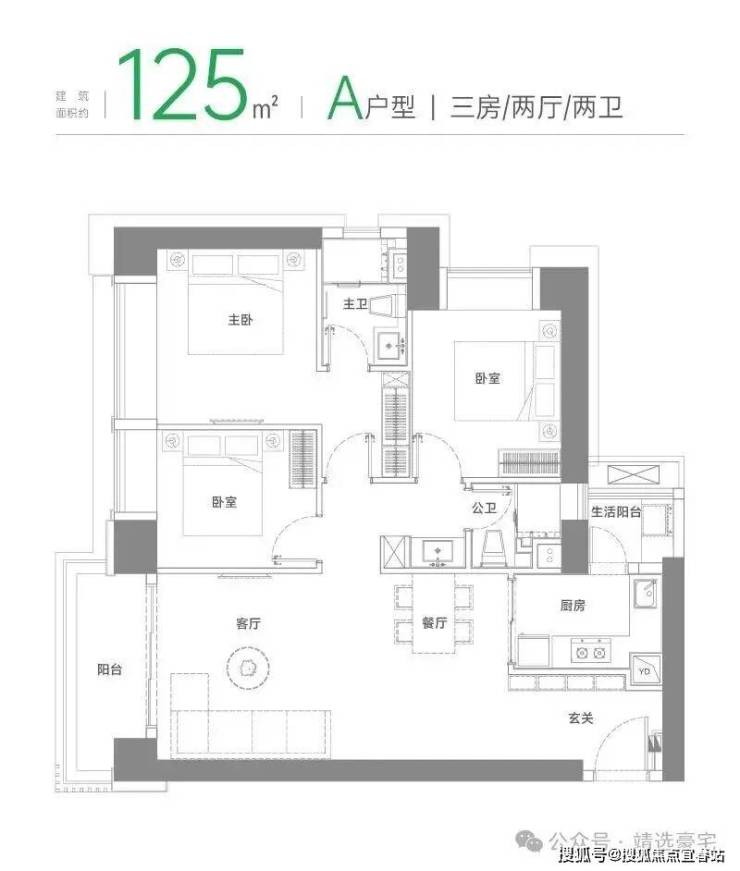 瞰景三房,飘窗、阳台拉开居住视野,主卧私享功能产备