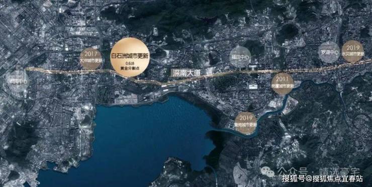 在伦敦、纽约这样的超级城市,其城市主轴的黄金分割点上均屹立着城市超级影响力的项目,如伦敦金丝雀码头、纽约中央公园,而深圳的发展主轴深南大道从罗湖中心到前海中心,绿景白石洲正处于黄金分割点之上。