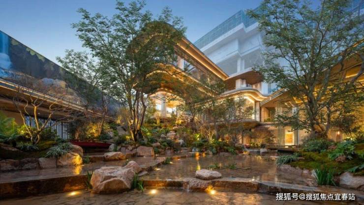 一座约15米立体高差四层立体森谷中庭,在眼前铺展成山林、溪谷、跌瀑、落泉交织的如诗画卷。