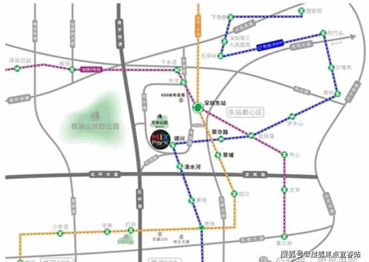 钧濠 Mix Park正落于未来17号线的“德兴站”附近(约200米即达),目前周边一公里范围内就有3号线和5号线两条地铁环绕,在建的还有14号线的清水河站。此外,项目紧邻清平大道,近距离对接南坪快速、水官高速、龙岗大道等快速城市干线,可直通福田、罗湖等中心。