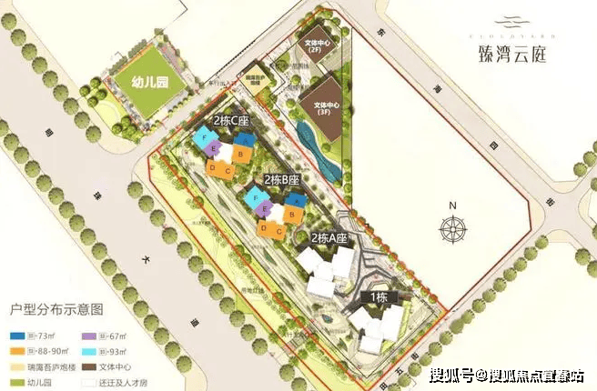 臻湾云庭包含5栋独立建筑,1栋、2 栋 A/B/C 座、3 栋幼儿园。1栋为公租房、2A为回迁房。目前在售的是2B、2C,4楼起售,1-3楼为商业和裙楼社区。