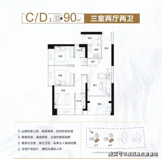 面积区间:67-93㎡2-3房住宅