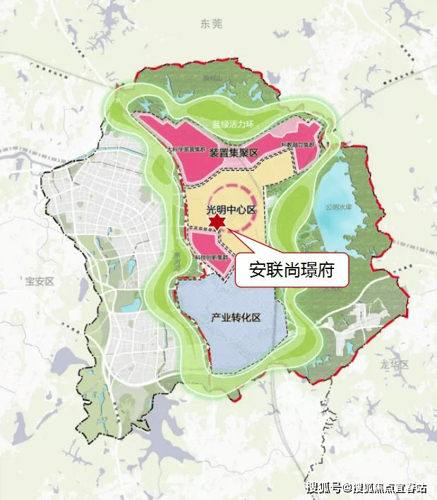 以“科学+城市+产业”为发展规划,光明科学城的空间格局划定“一心两区,绿环萦绕”,成就置业主场C位。