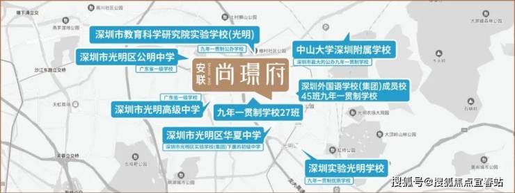 不仅如此,安联尚璟府周边2公里范围内,还拥有深圳小学光明曙光学校、东周小学、中山大学深圳附属学校等超9所小学,深圳实验光明学校、华夏中学、光明区高级中学等超8所中学护航,出家门入校门,全方位呵护孩子3-15岁的成长。