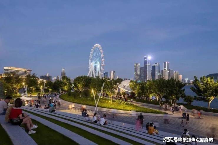约2公里长的滨海廊桥城市绿廊缝合了城市地标、公共空间、绿化、地铁枢纽等,让城市以点成线,璀璨的灯火串联,配套与配套之间实现便利的交融,城市的活力也此之间流动蔓延。