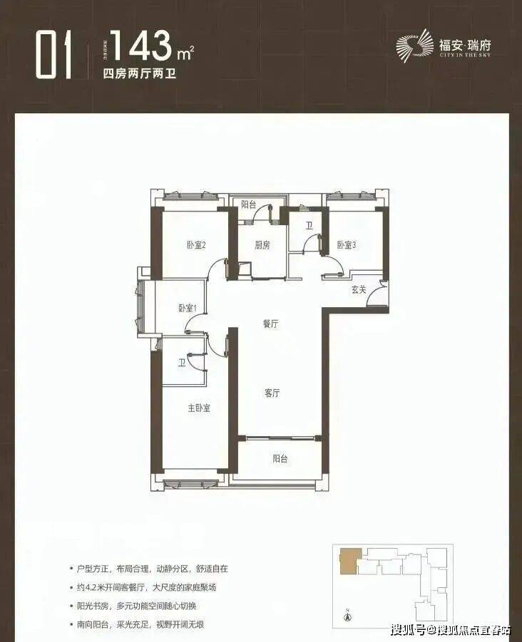 126㎡的4房2卫设计有大景观阳台;