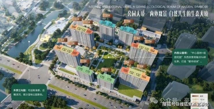 项目自己还打造了一个内部的“中心园林+组团花园”,东西双景观轴绿化率为35%,外可欣赏涌景海景,内可以享受中心园林。