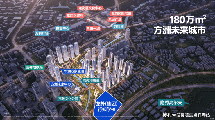 合正方洲在龙岗中心区、区政府的周边,云集了整个龙岗区的政务机构、商务集群、文化地标、教育资源与庞大商圈。
