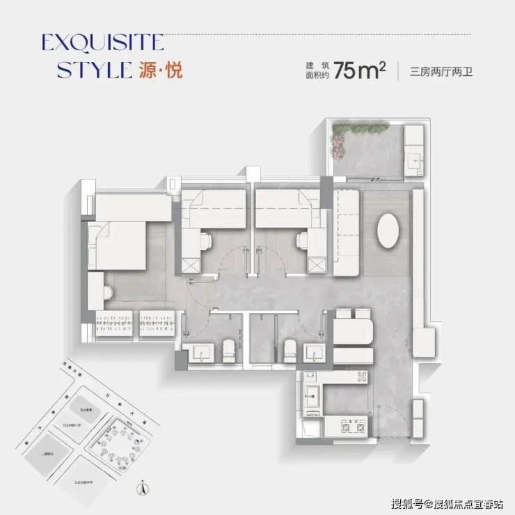 本项目房源面积涵盖约75-175㎡品质三至四房,户型南北通透、极致实用,满足多种居住需求。