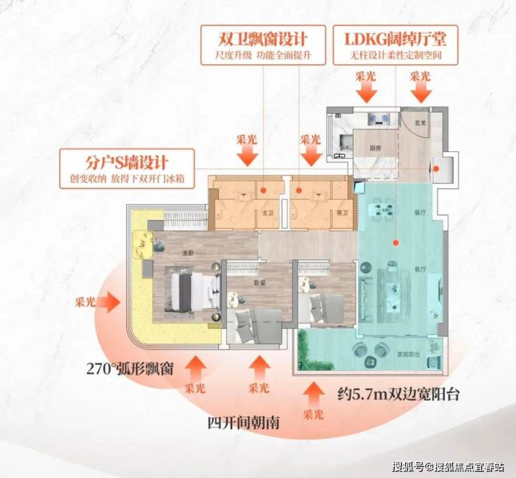 南向大面宽采光,主卧270°弧形飘窗瞰山景,打造自然宜居新场景