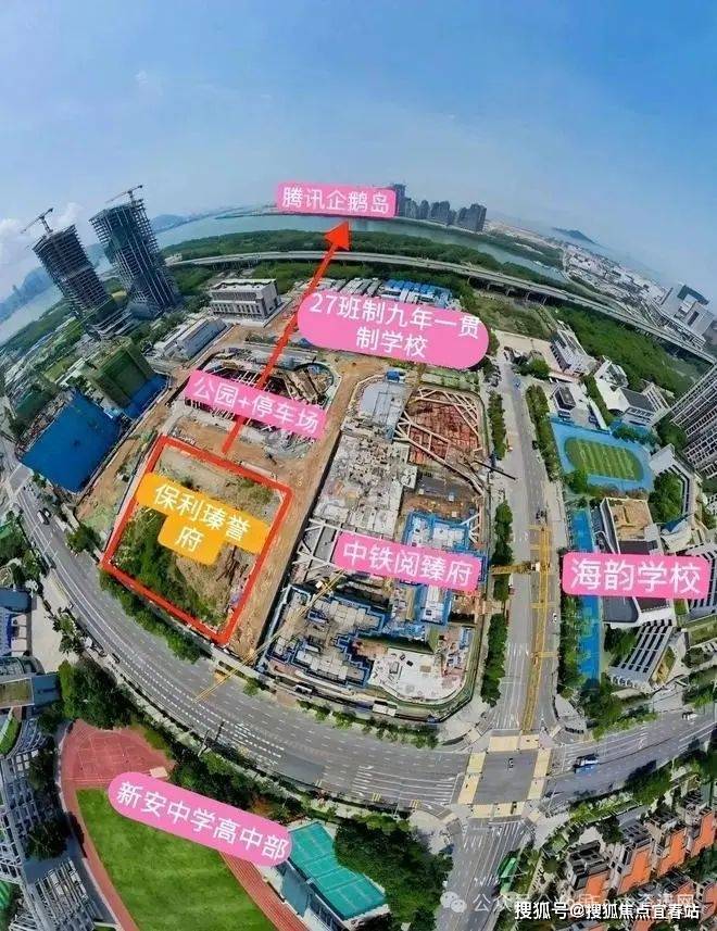 项目西侧为海韵学校,公办直属九年一贯制艺术教育特色学校,于2023年12月牵头组建深圳市宝安区海韵学校(集团),此外项目对面还有新安中学高中部。