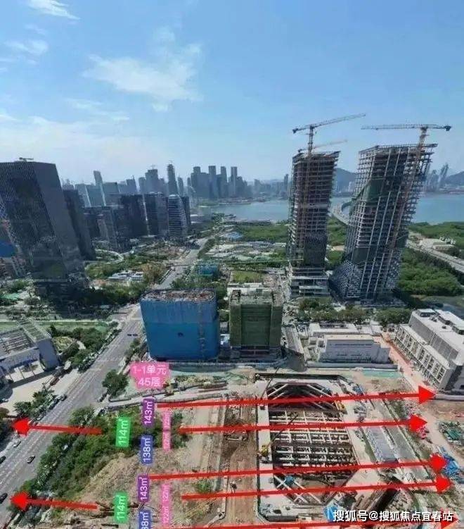 项目整体预计规划为2栋45层的高层住宅,建成后或将提供约403套,114-122-138-143㎡ 纯四房产品。4梯5户设计,8楼以上可看部分海景,户型最大使用率高达108%,最大赠送面积接近44㎡!项目与前海相邻,一路之隔就是腾讯的企鹅岛,由于前段时间项目前方改规划为教育用地,也就是在6层以上的单位,大部分户型可以穿过学校高度后眺望一线海景!妥妥的又一核心区王炸使用率新盘!