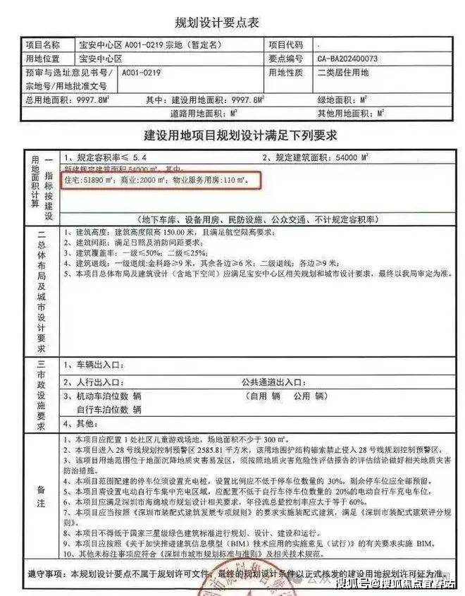 出让文件显示,该地块未设置商品房销售限价,不受“70/90”户型政策限制,除110㎡物业服务用房,无其他配建要求。另外,须承诺提供“交房即发证”服务。