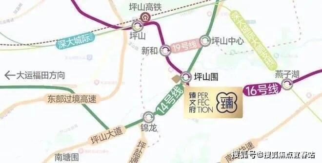 14/16号地铁线“坪山围站“F出口距离约370米,3站可到坪山高铁站,快速通往深圳北站,福田中心区,香港西九龙等,周边还有坪山大道,深汕路等主干道。