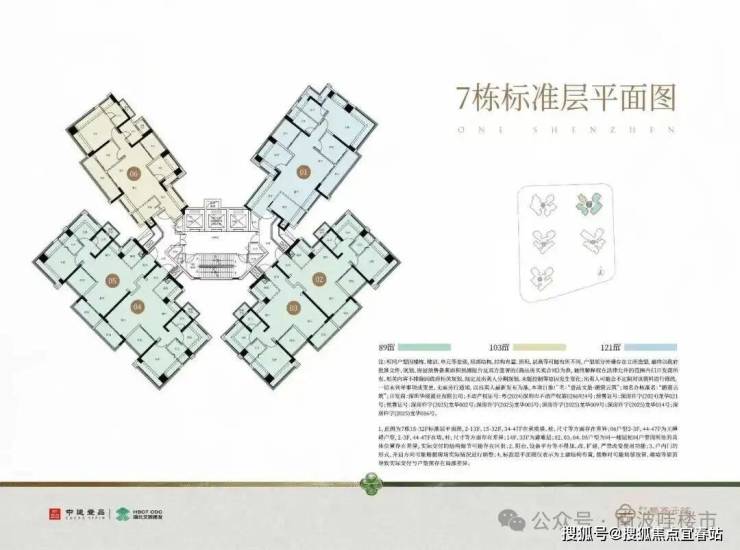 面积有89㎡3房2厅2卫,103-121㎡的4房2厅2卫户型,共262套房源,总高47层,全南向户型,层高3.1米。