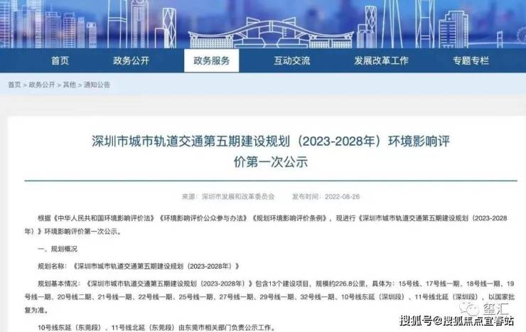 2022年8月26日,深圳市发改委官网发布《深圳市城市轨道交通第五期建设规划(2023-2028年)》环境影响评价第一次公示。