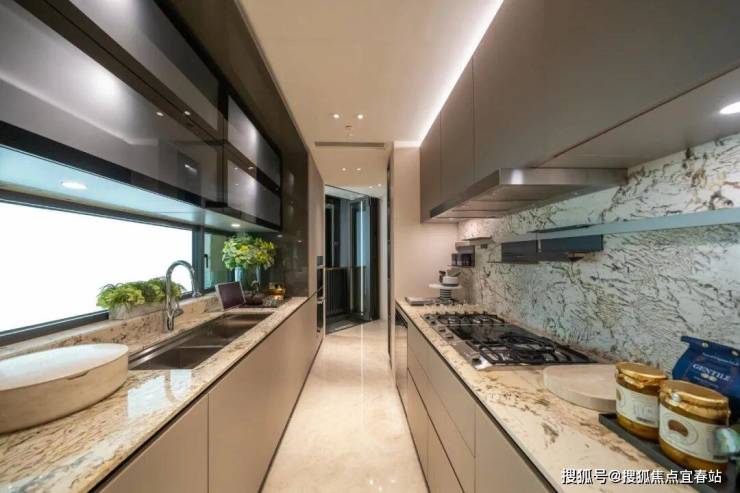 值得一提,厨房内亦特设折迭式餐桌,随时延伸作用餐区,厨房另一卖点是工作平台以趟折门设计,只要屋主拉开趟折门,便可以一边在厨房的用餐区,一边欣赏屋外的景致,做到引景入室。