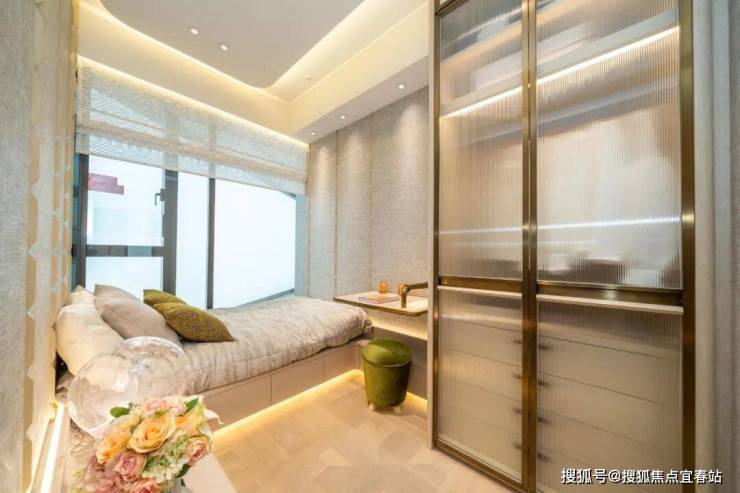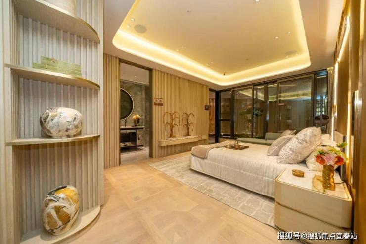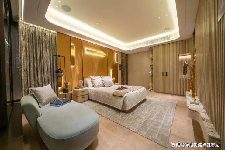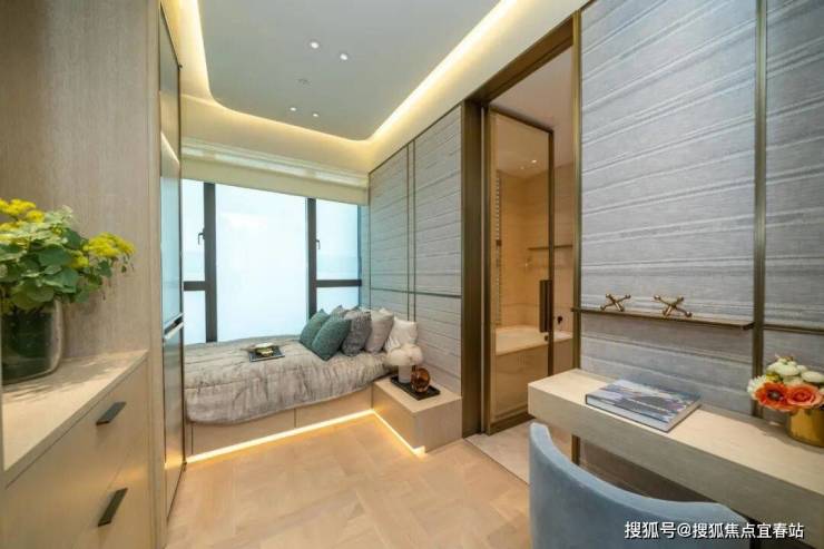 三间睡房均采用套房设计。主人睡房继续沿用简约高雅风格,采用渗光灯槽设计,为空间增添几分柔和感。房间位置宽阔,摆放双人床后,住户仍然可以3边落床。