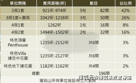 户型以3、4房为主,亦特设市场罕见的复式连天台泳池特色户,共有364个车位。