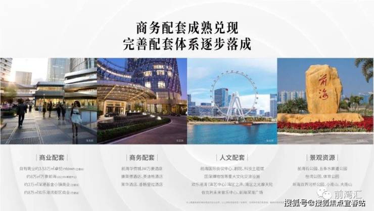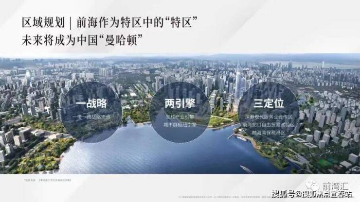超级门户:前海第一拍,约65万㎡超级商务综合体,集高端商务、顶级居住、旗舰商业于一体,由FARRELLS/CITYGROUP/AECOM等国际团队联袂打造国际典范商务平台