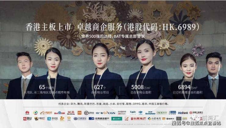 卓越商企服务集团1999年成立于深圳2007年,成为深圳第一家加入“国际金钥匙联盟”的物业服务企业,2006年走上市场化发展道路,逐步成为商务物业领域头部企业2020年于香港联交所主板挂牌上市(股份代码:6989.HK)