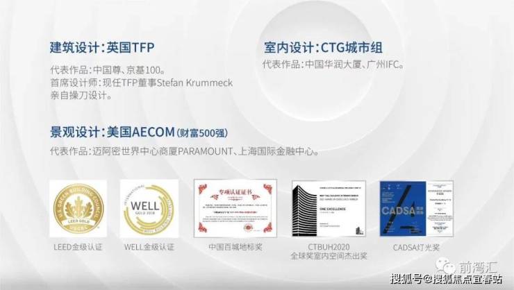 国际团队联合打造 英国TFP Farrells、AECOM、CTG等50余家国际一流设计单位获誉无数,LEED金级认证、CTBUH2020全球奖室内杰出奖、美国LIT照明设计奖等