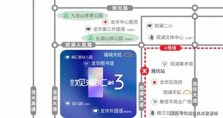 合正观澜汇三期分三期开发拆迁用地124281.8㎡,云境、云庭地块共分10栋开发,含超高层住宅、酒店、商业、21班幼儿园等配套设施。区域价值;项目交通;地铁:4号龙华线延长线茜坑站B出口、18号线(规划)、22号线(规划)。