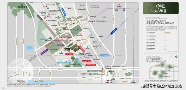 城市超核——总部级都会核心引擎,5年内建成约9.6万方人文场馆,涵盖演艺馆艺术馆等;打造5年营业额超5亿,3年引入超30家深圳首店、旗舰店的约13万方五星商业;约18万方总部级商务群。