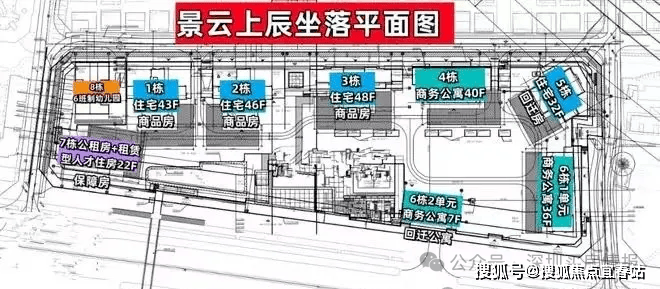 景云上辰花园,由宇宏集团操盘开发,总占地面积约3.67万㎡,总建筑面积约22.74万㎡,计容建筑面积约16.57万㎡,容积率4.51,绿化率40%,共由5栋32-48F住宅+3栋商务公寓组成,其中1栋商品房43F,2栋商品房46F,3栋商品房48F,4栋商务公寓40F,5栋回迁房32F,6栋1单元商务公寓36F,6栋2单元回迁公寓7F,7栋公共租赁住房+租赁型人才住房22F,8栋是一所6班制幼儿园。
